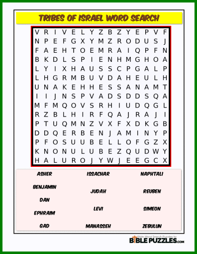 TRIBES OF ISRAEL WORD SEARCH - ASHER BENJAMIN DAN EPHRAIM GAD ISSACHAR JUDAH LEVI MANASSEH NAPHTALI REUBEN SIMEON ZEBULUN